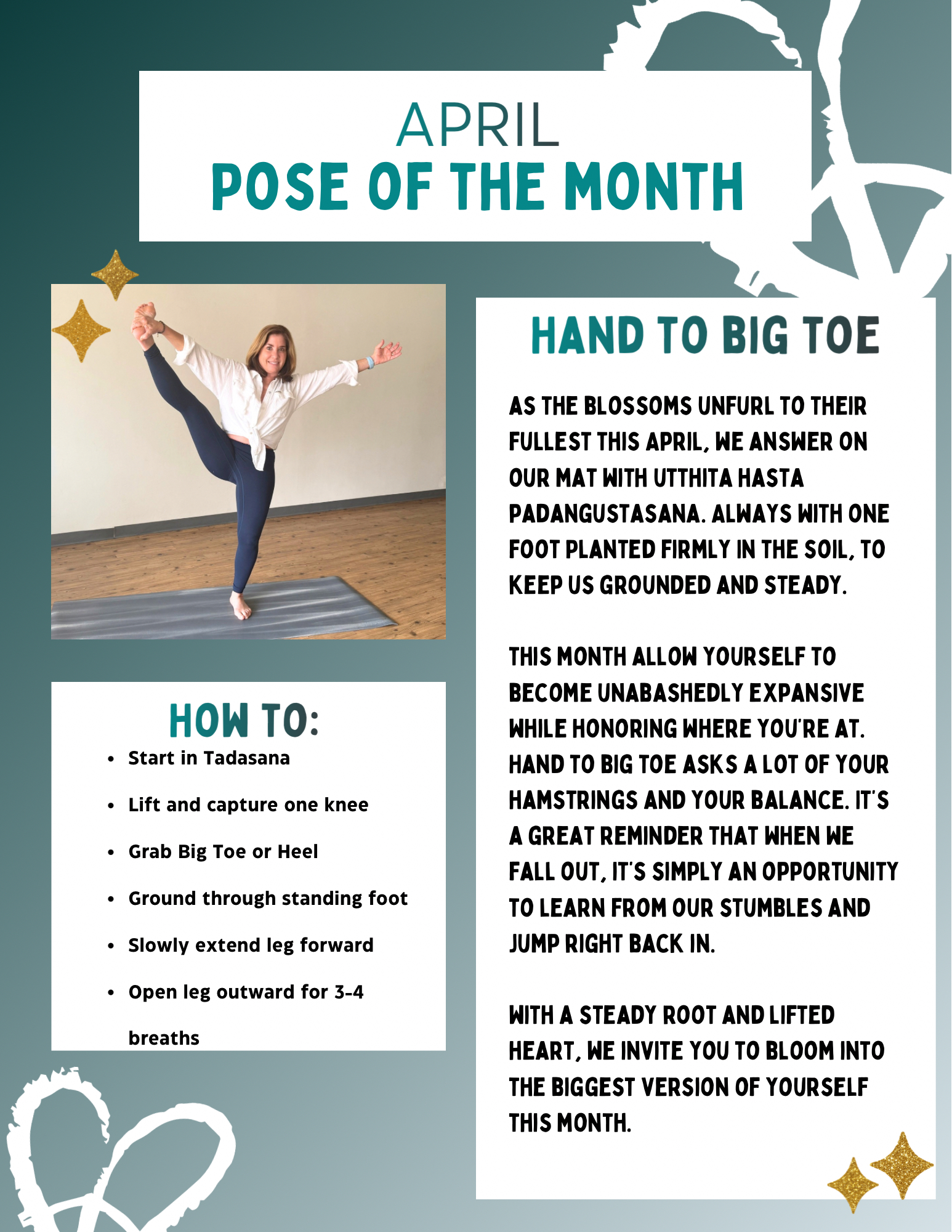April Pose of the Month April 11, 2026 Blog, Events, News Leave a Comment on April Pose of the Month Open up this April. Class Schedule